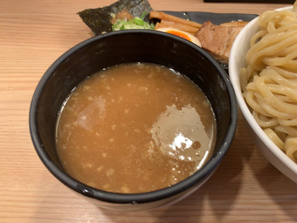 豚骨のコクと魚介の風味が絶妙にバランスよく調和しており、濃厚ながらもしつこさを感じさせない仕上がりです。太麺によく絡む濃度で、麺をつけるたびにしっかりとした味わいを楽しめます。