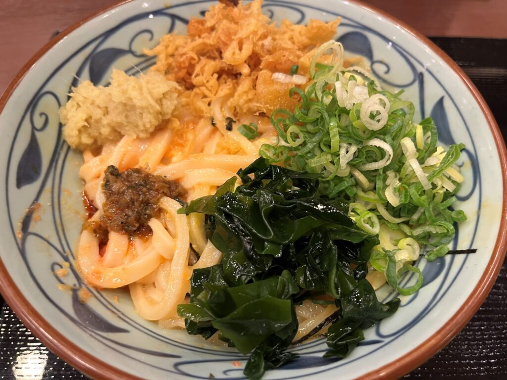 わかめ、青ねぎ、天かす、おろししょうが、しび辛ラー油など、無料トッピングの種類が豊富です。これらを自由に組み合わせることで、自分だけのオリジナルうどんを作れます。