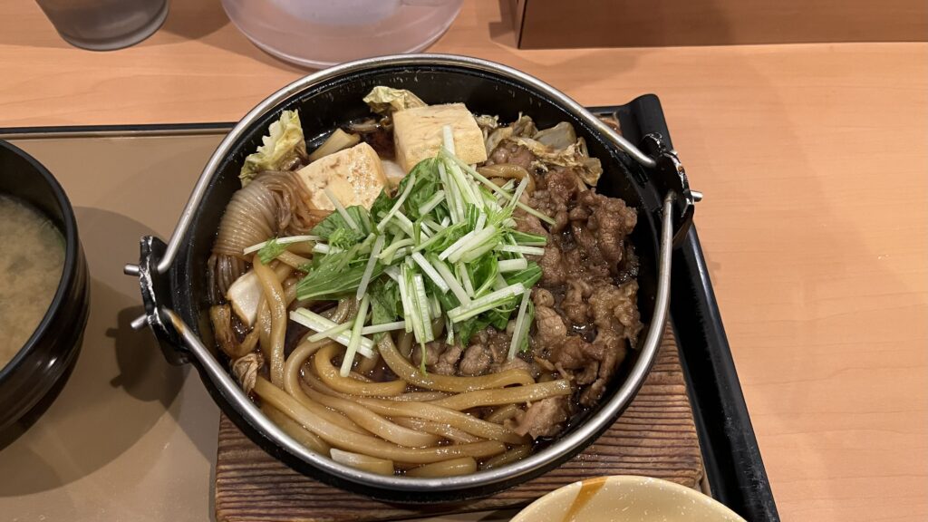 1,090円という手頃な価格ながら、甘辛い味付けがしっかりと染み込んだ牛肉、うどん、豆腐などの具材がたっぷりと入ったボリューム満点の内容となっています。